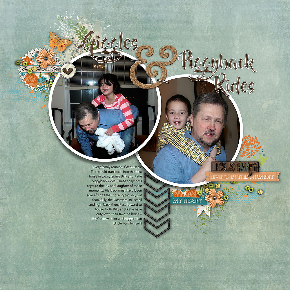 First up we have this pretty page by Penny (pennyh) called Giggles & Piggyback Rides – how cute!