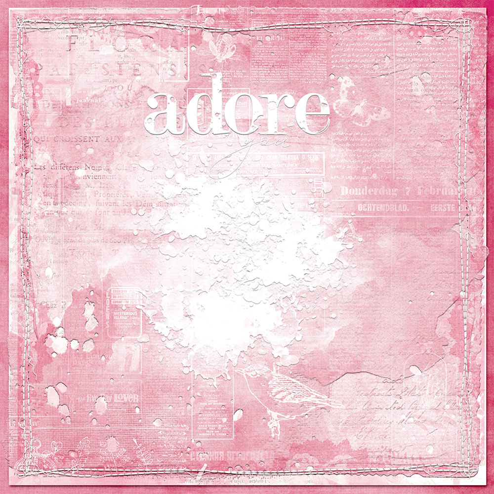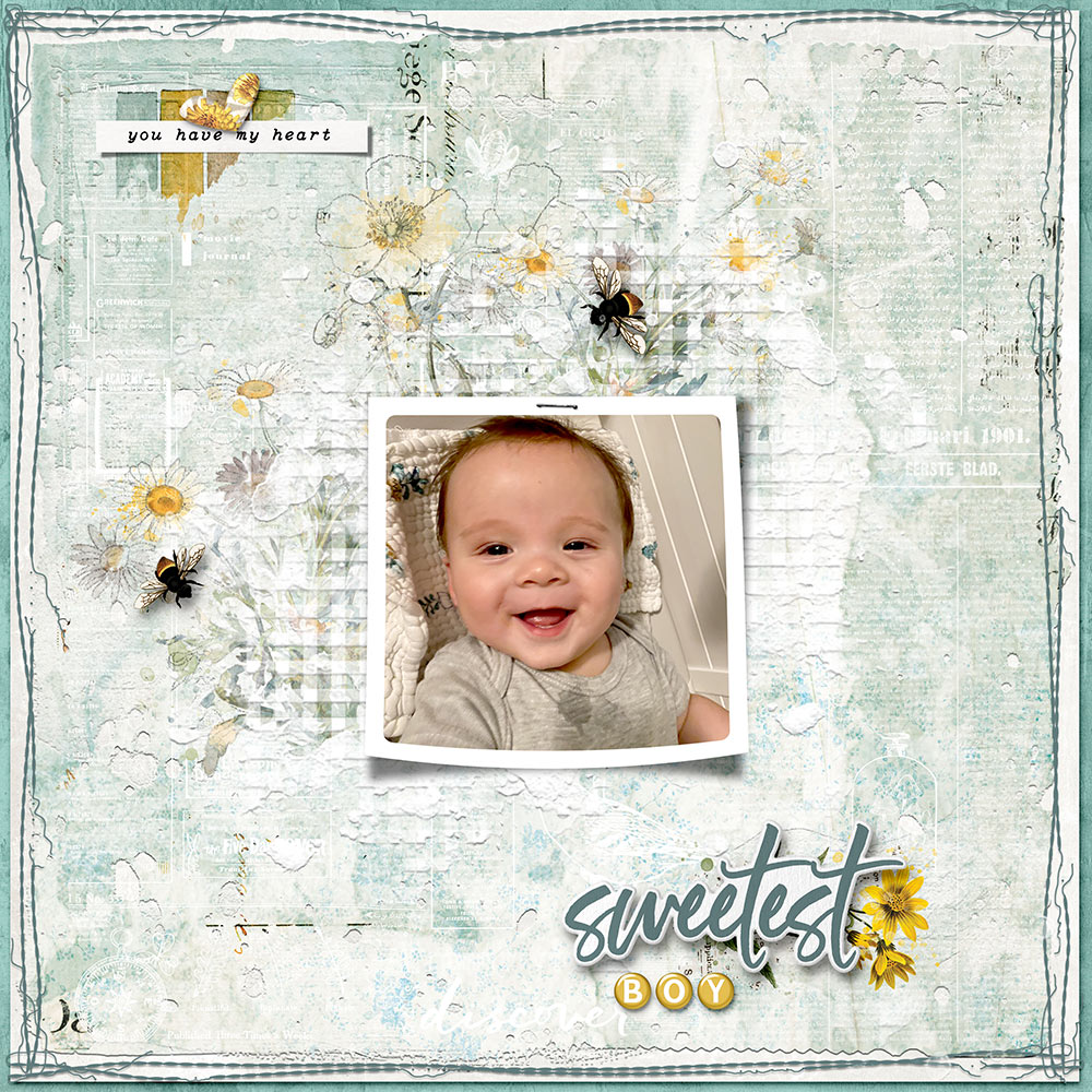 Even though I have a lot going on, the look is still cohesive, and my granddaughter Jocelyn still shines. I kept my background softer yet with interest by using just the white on my overlays.