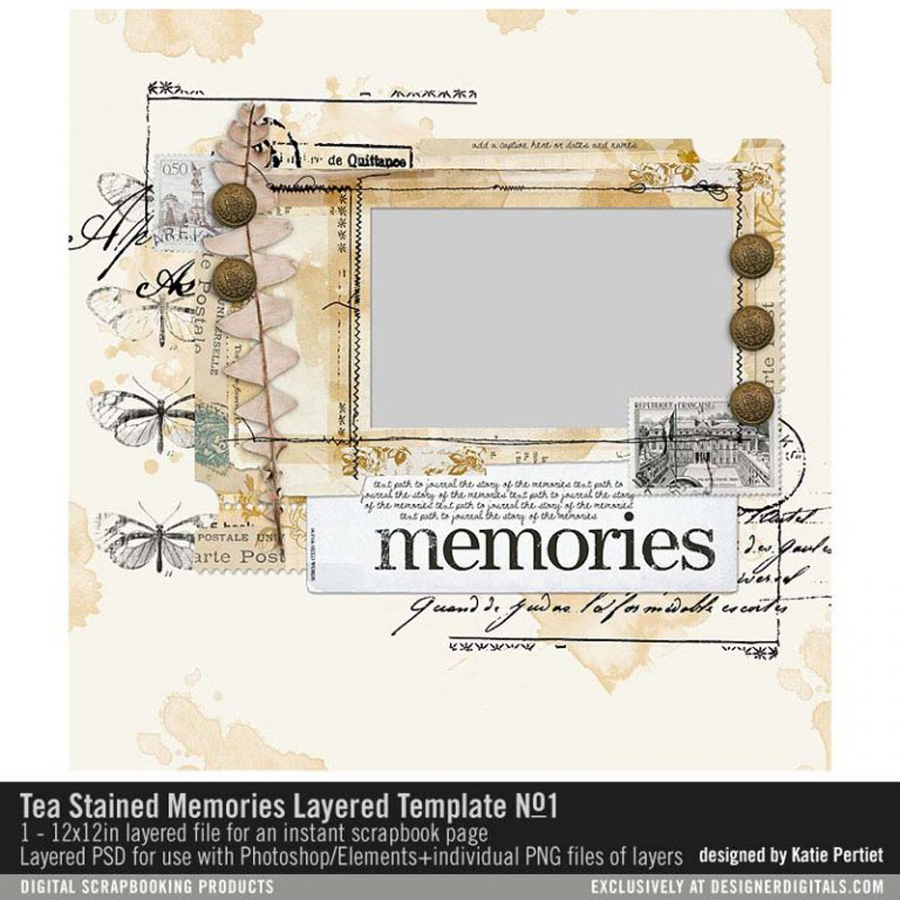 The first page was designed by Stacia. She chose a wonderful photo for the centerpiece of her page. Stacia used the basic design of the Tea Stained Template and added elements from the Layer Works around her photo. These items blended together perfectly for her lovely page. Stacia completed her page with Canvas Cardstocks Paper Pack 16.