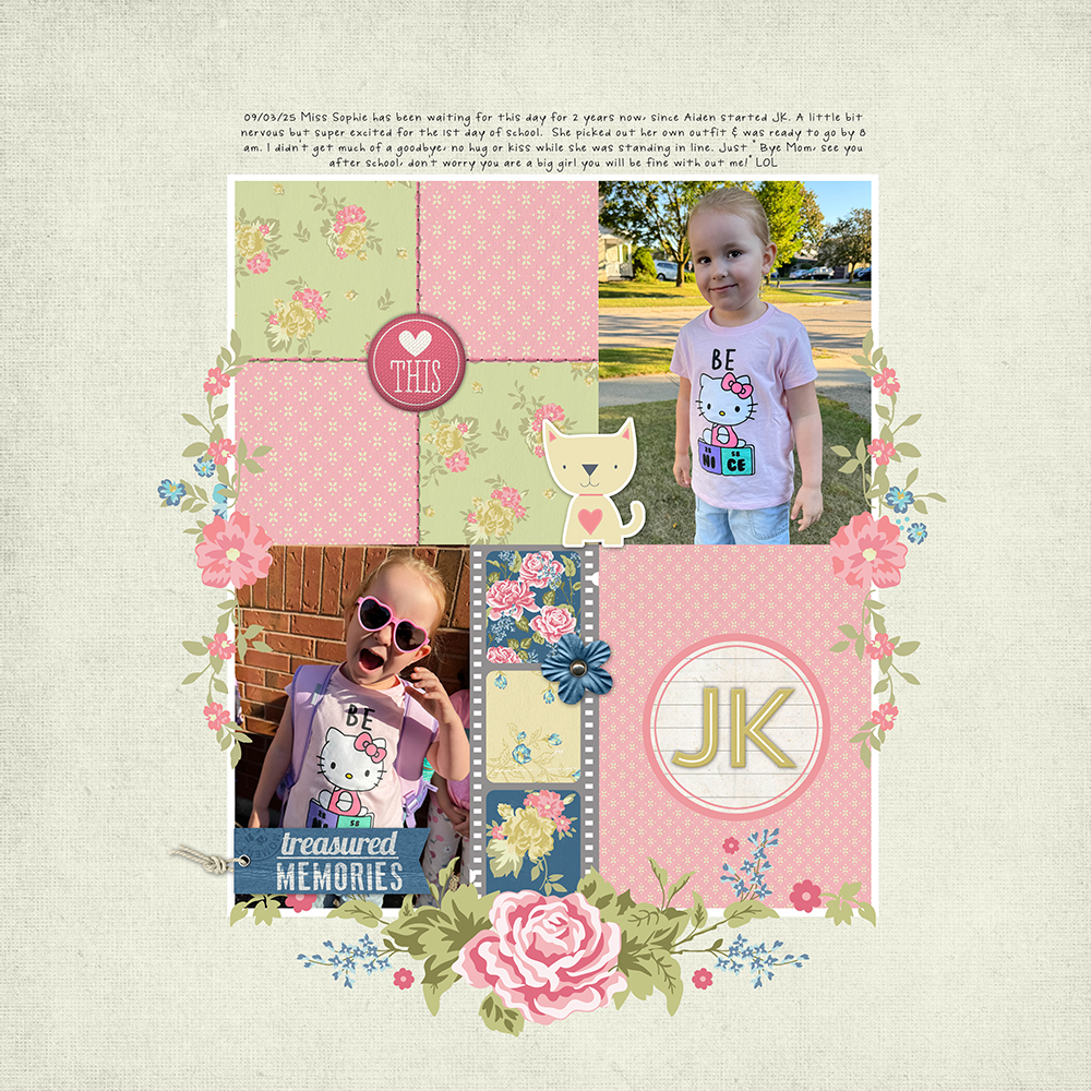 Finally I, Erin (ErinR) created this layout documenting my girl’s 1st day of Junior Kindergarten.