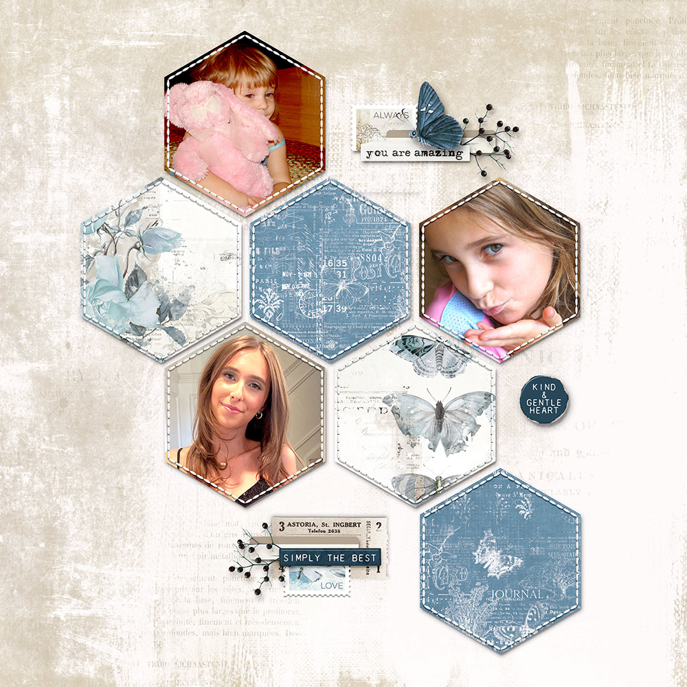 Hello everyone! Kathy (blackkathy) here with a new challenge of the month. This month, I have chosen the theme of “on the grid” which is using a grid style in your scrapbooking artistry. It can be as simple as using frames in rows and columns, templates that use a grid format, or creative variations using different shapes and offsets. Grids can make your layout look polished but not boring. Just use your imagination and have fun with it!