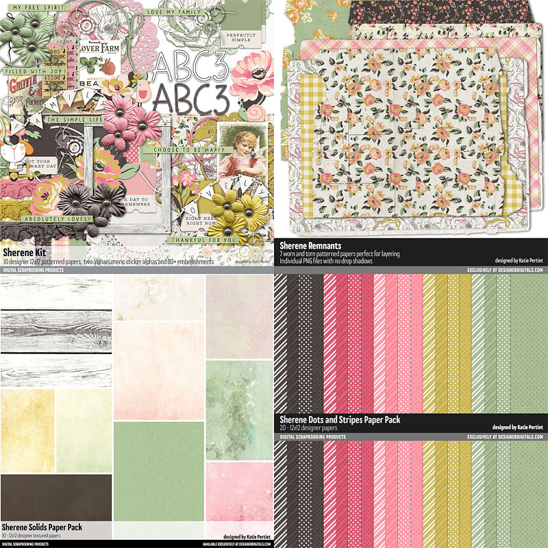 The goal of this challenge is to make a layout using the Sherene Kit or the Sherene bundle. If you need to use an item or 2 from your stash that is perfectly okay as long as your layout showcases this collection. Katie has provided a 50 % off coupon code for you. Here is the code KPD50SH04