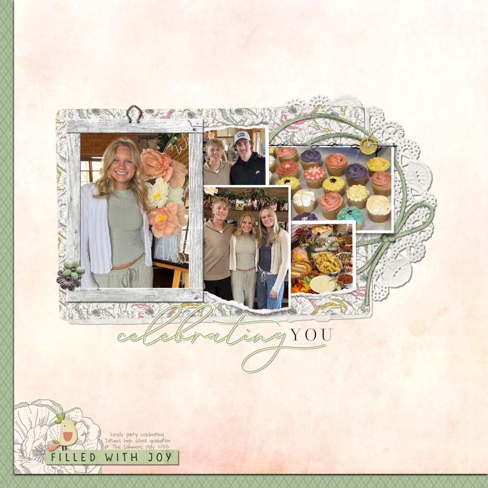 Addie (AddieG) made this page highlighting a graduation party. I love the framing, the cluster of elements in the corner and how she pulled out the greens from the kit.