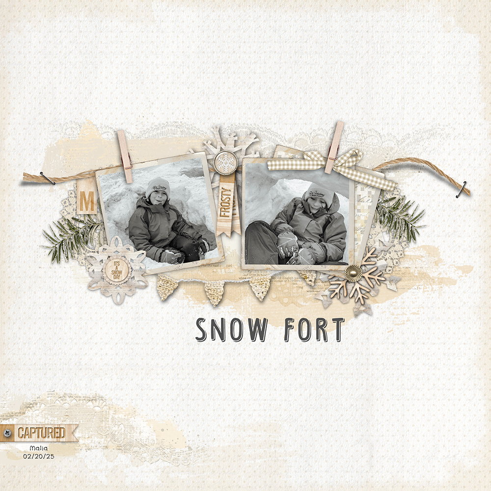 Valerie (nana_vg) created this fun snowy layout. I love the paper and elements she chose to use to highlight these photos. And the recoloring of just a couple items was brilliant!