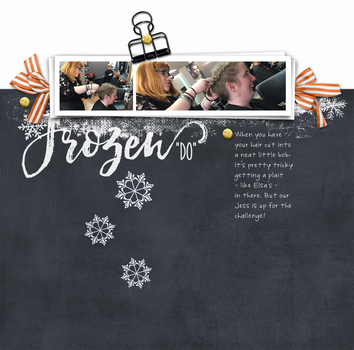 Last of all we have Stacia’s gorgeous page. She has chosen an alternative frame from the same element pack to better suit her photo selection and she has also used the white space at the bottom of the sketch to add a blended photo. Brilliant!