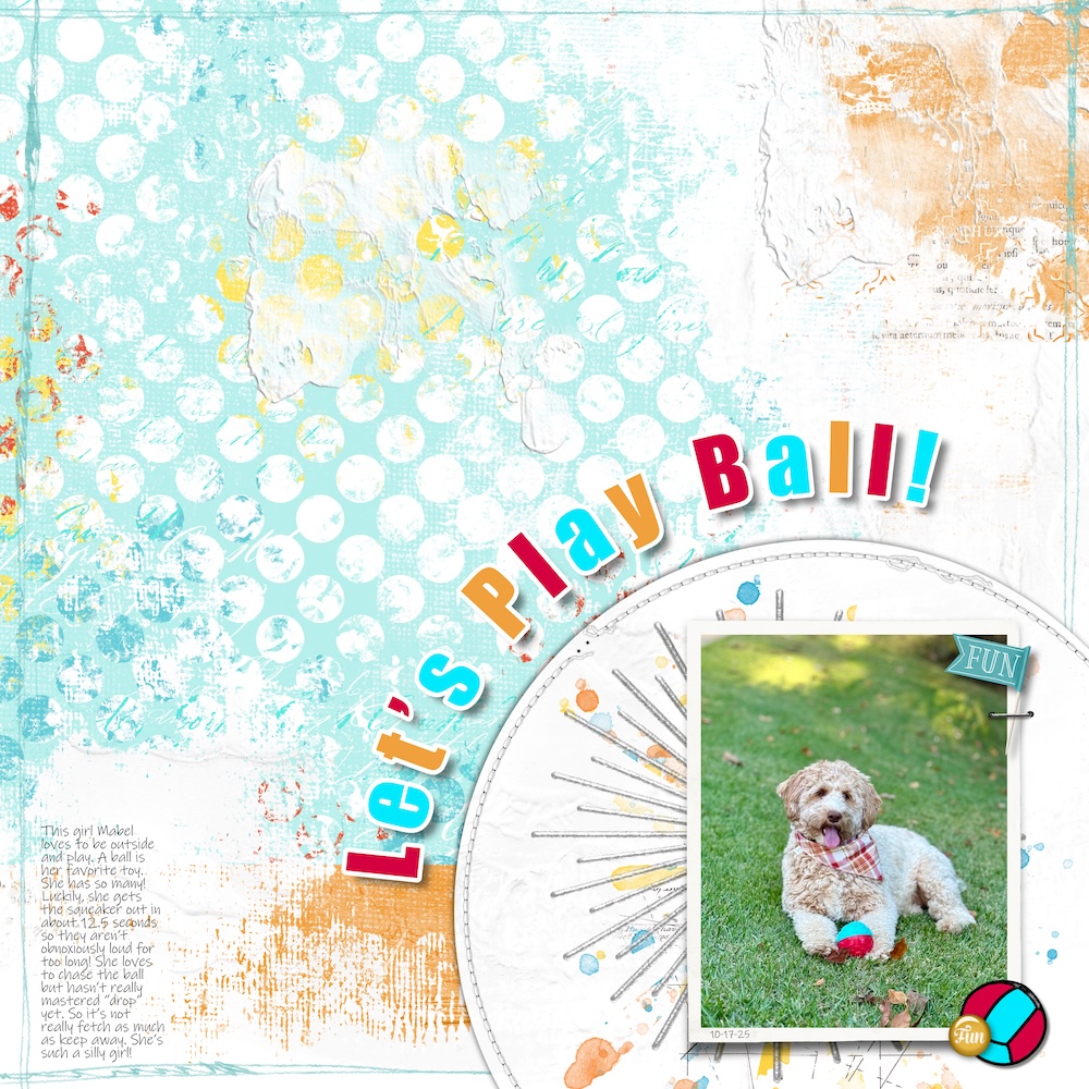 Cori (CoriK) created this awesome page and she even used a photo of her cute pup just for me 🙂 I love how she used the different colors for the title which matches sweet Mabel Lou’s ball and has the matching background. I love everything about it!!