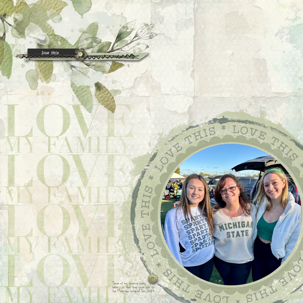This next page is by Addie (AddieG) and it’s so lovely!! I just love the circle framing with the scallops and that cute cluster in the top left corner. The blended title is fabulous as well!! I love how this turned out!!