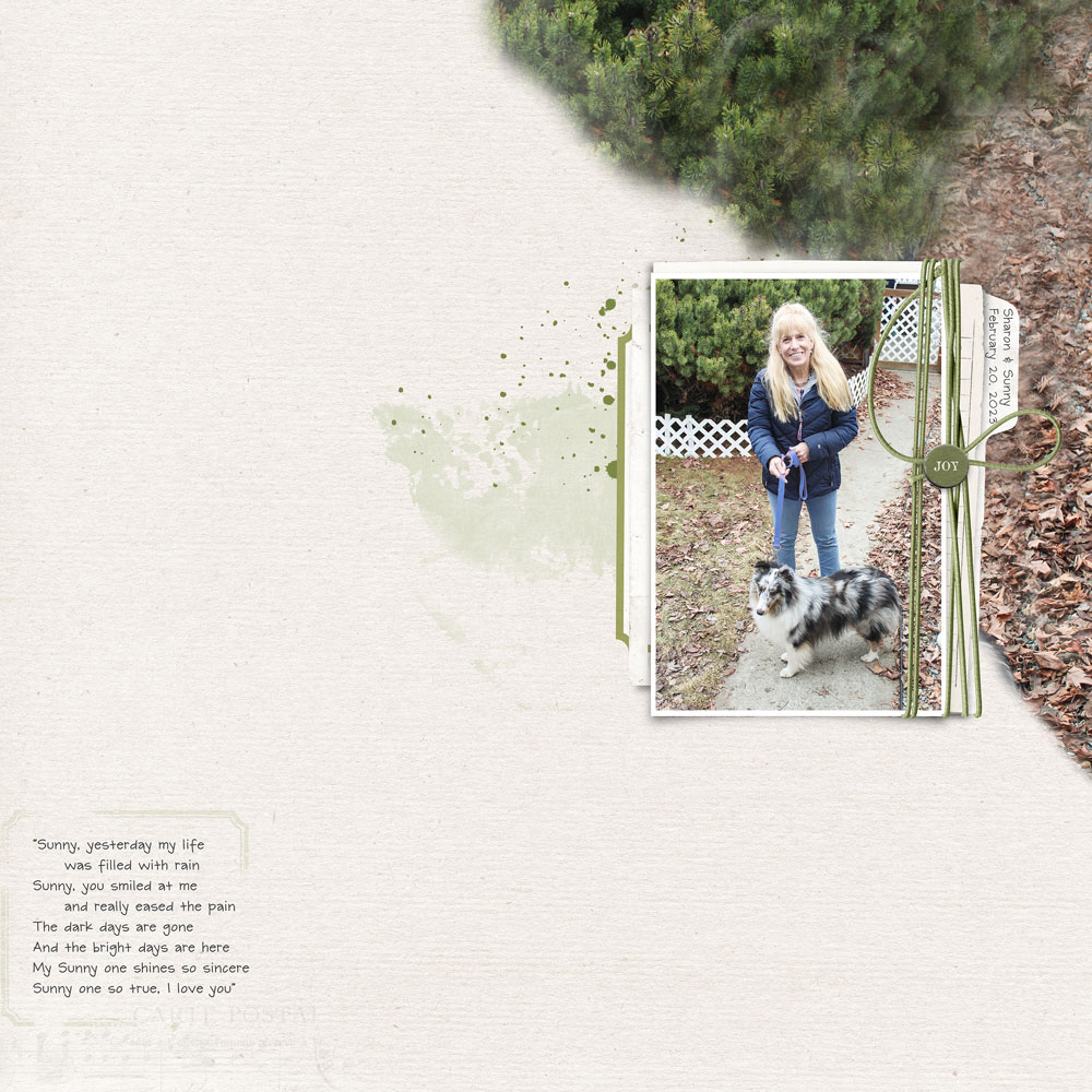 This pretty page is by Julie (MaggieMae). I love that angular masking of her background photo. It sure makes it look different and interesting. I also love the brushwork and her journaling in the opposite corner. Another beautiful lift!