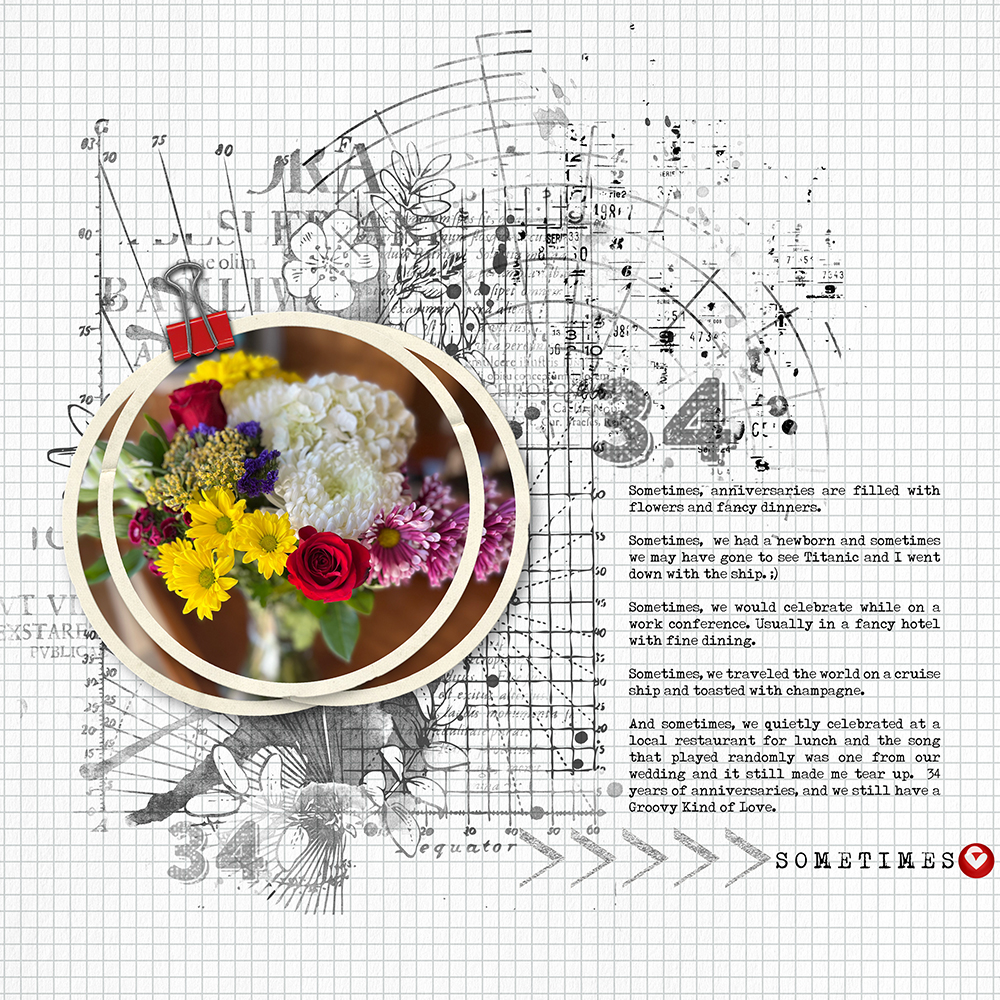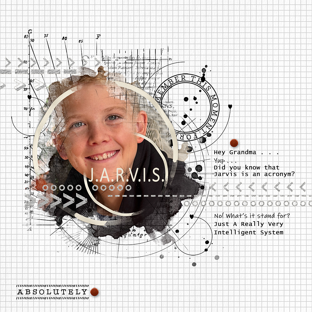 Welcome to this weeks Saturday Scraplift! I’m so glad you stopped by because I love everything about this week’s inspiration. The graph paper background, the graphic brushes, the funny conversation and the clever title work are just perfect. Sharon (shannamay) really knocked this one out of the park!