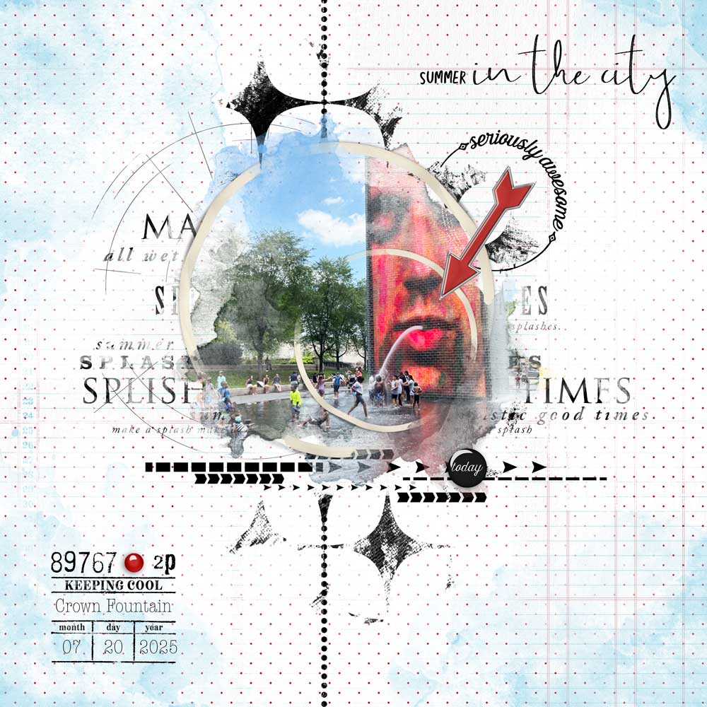 Up next is Jana with a very artistic page about a local landmark. Love the circle and diamond brushes and the red accents.