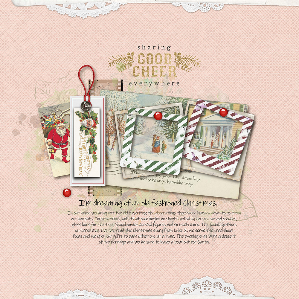 Up first this week is Merrilee with this precious old fashioned Christmas page. Her family traditions are so beautiful. Love all the soft colors and her sweet vintage tag.