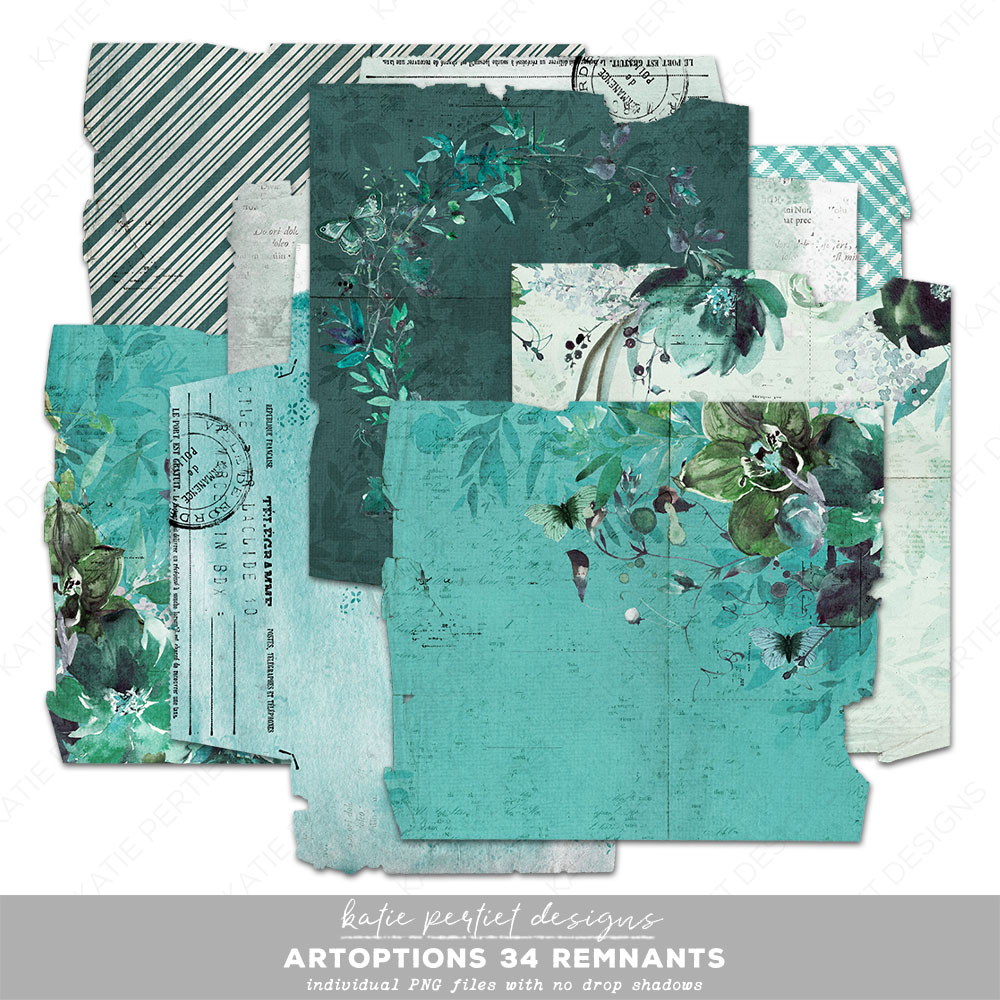Tags: AO34, ARToptions, blue, floral, green, Katie Pertiet, papers, plaid, ripped, striped, torn, turquoise, worn, wreath