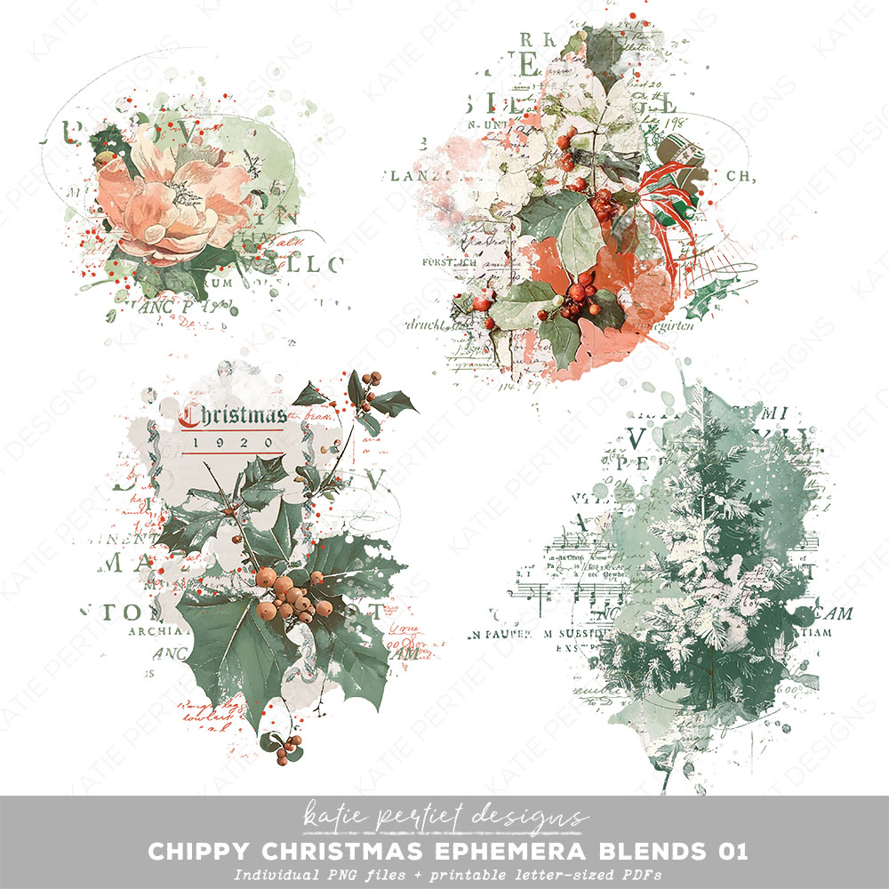 Ready for your Christmas memories, this ephemera blends pack includes 4 artsy and collaged PNGs perfect for instant artistry and using with blend layer styles. Individual PNG files and printable PDF files. File Size: 40MB