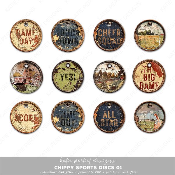 12 – 2in round accents all grunged up and ready to go! Individual PNG files with no drop shadows. Printable PDF and print-and-cut files are also included. File Size: 20MB