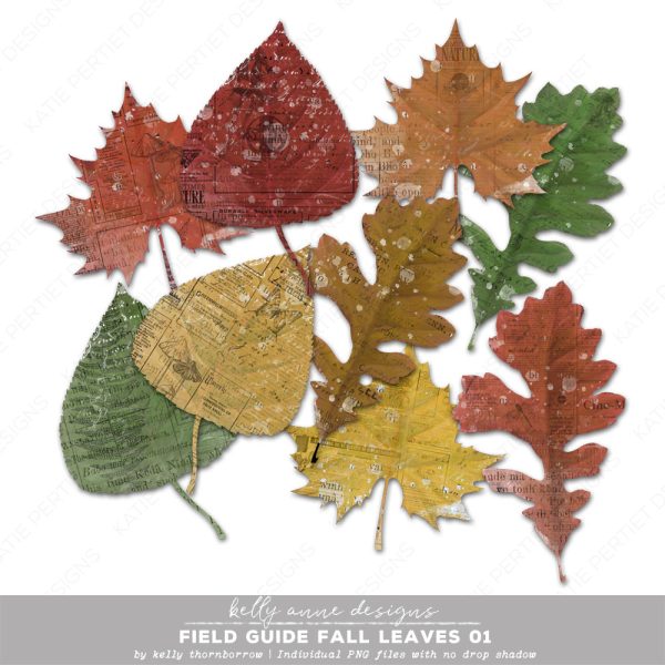 9 Colorful fall leaves with vintage style and newsprint splashes. Individual PNG files with no drop shadows. File Size: 20MB
