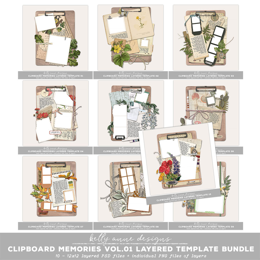 Clipboard Memories Vol. 01 Layered Template Bundle