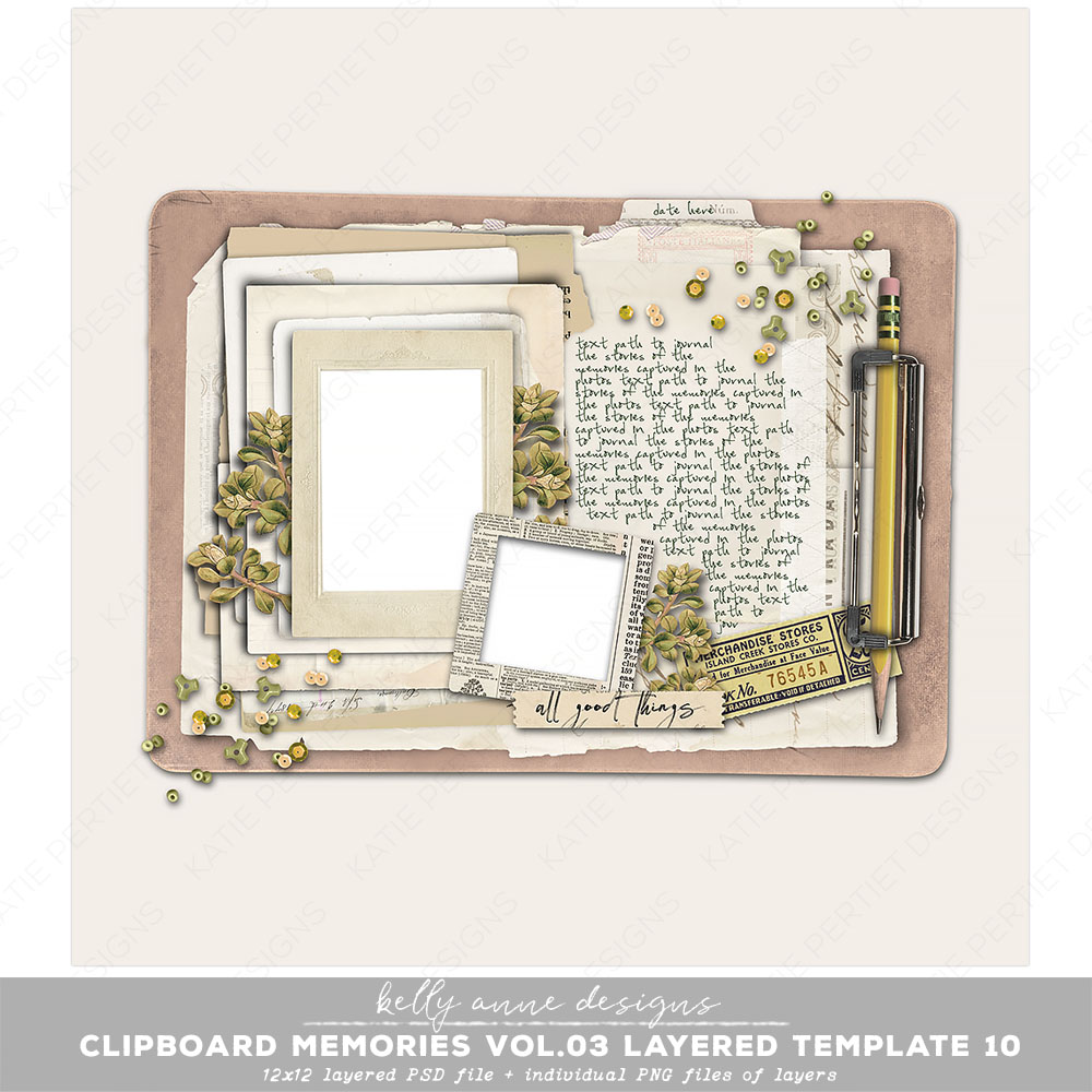 This is so much more than a layered template! It includes space for photos, clipboard, ephemera and a mix of elements with text paths all in position! Layered Adobe Photoshop file for use with Adobe Photoshop as well as PNGs of individual layers. File Size: 75MB