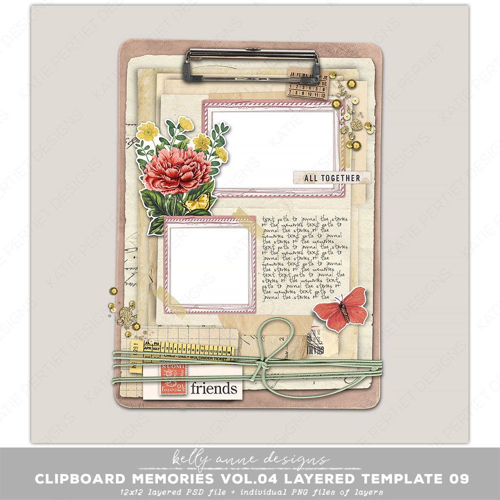 This is so much more than a layered template! It includes space for photos, clipboard, ephemera and a mix of elements with text paths all in position! Layered Adobe Photoshop file for use with Adobe Photoshop as well as PNGs of individual layers. File Size: 70MB