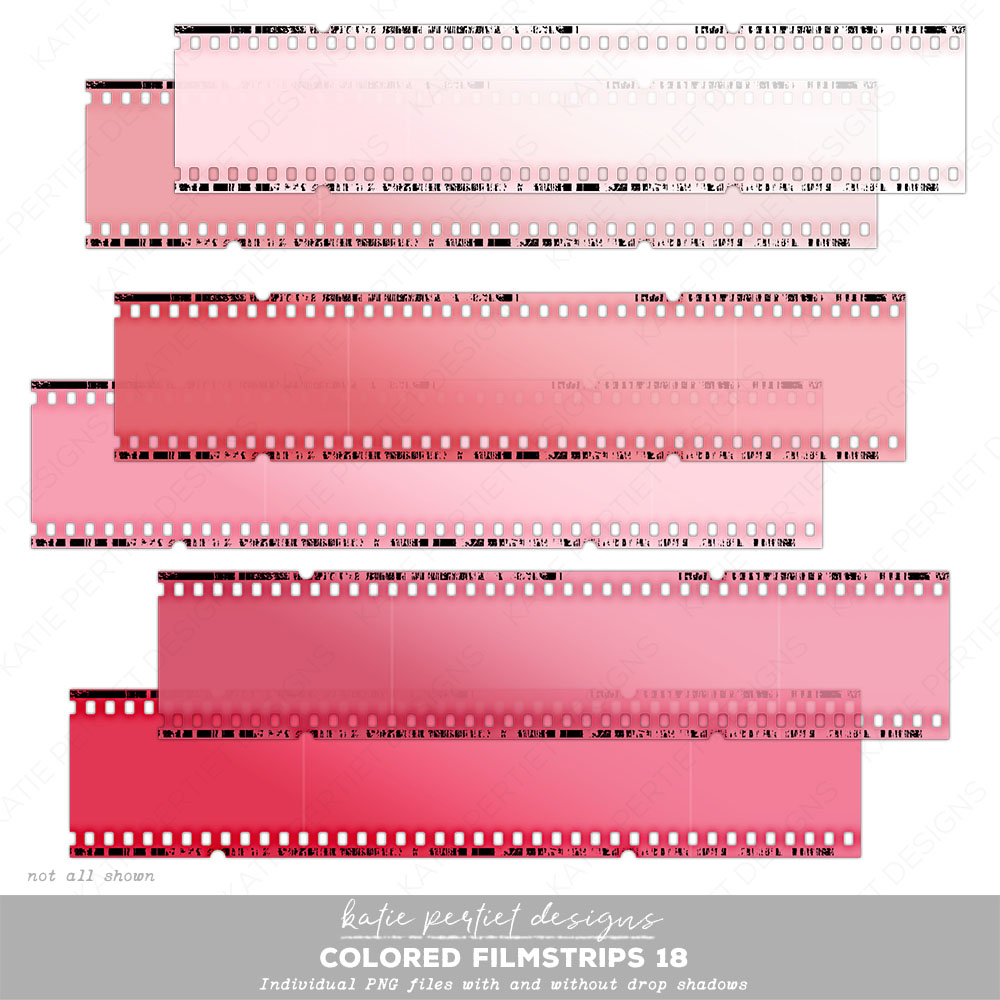 6 Colored transparency filmstrips in a fresh palette. Individual PNG files with and without drop shadows. File Size: 7MB