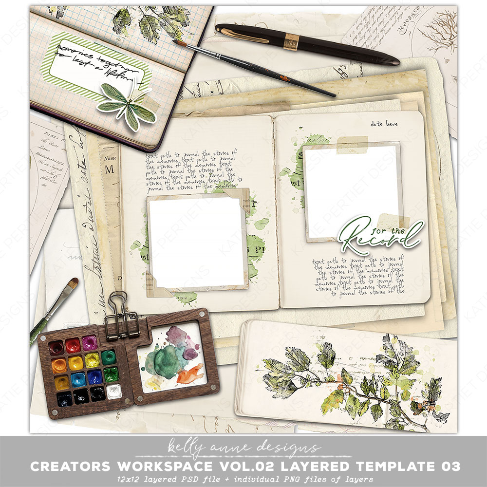 This is so much more than a layered template! It includes space for photos, layers of papers and notebooks, ephemera and a mix of elements with text paths all in position! Layered Adobe Photoshop file for use with Adobe Photoshop as well as PNGs of individual layers. File Size: 155MB