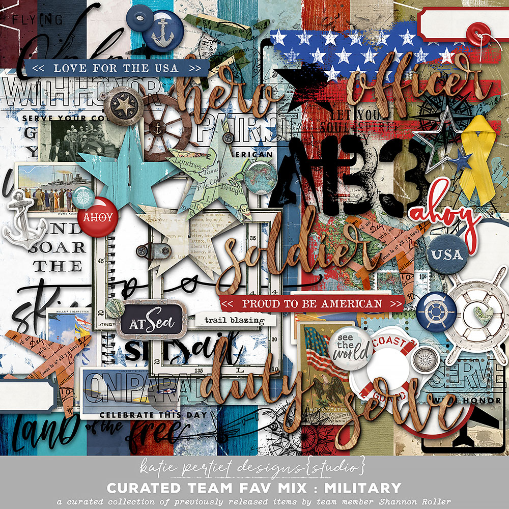 A curated collection of American military essentials curated by team member Shannon of all of her favorite pride, service and honor of military go-to items! Kit includes 20 designer 12×12 papers, a stamped alphabet set and 80coordinating embellishments. File Size: 160MB
