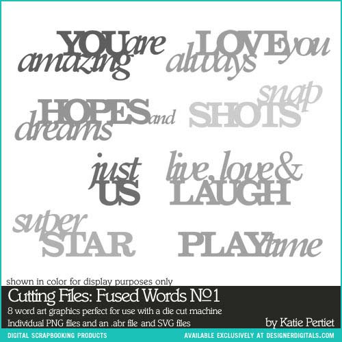 8 word art graphics perfect for use with a die cut machine. Or simply stamp in a color, clip to your papers for a readymade page title. Individual PNG files and an .abr file. File Size: 500k
