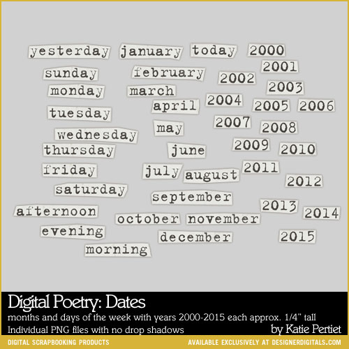 Months and days of the week with years 2000-2015 cut from newsprint. Each approximately 1/4 tall. Individual PNG files with no drop shadows. File Size: 800k