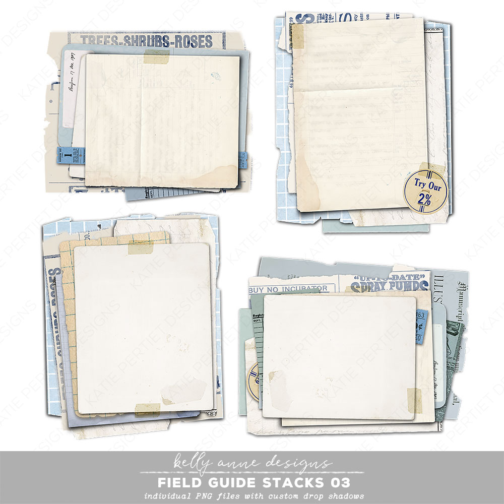 4 taped together vintage ephemera stacks with custom shadows. Individual PNG files with custom shadows. File Size: 10MB