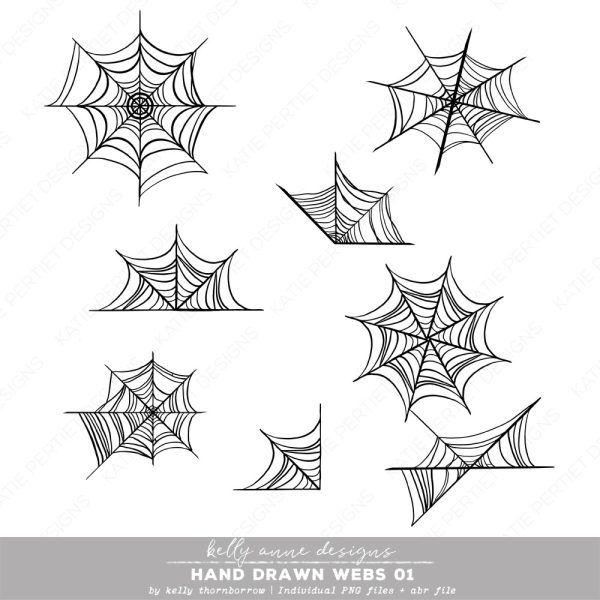 8 Large handdrawn spider web stamps. Individual PNG files and an .abr file. File Size: 5MB