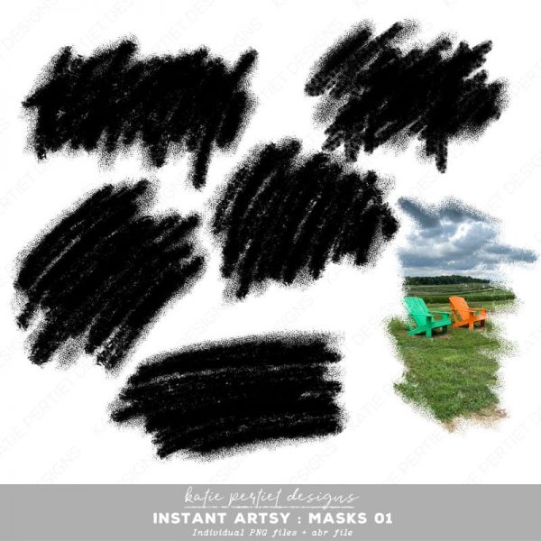 5 Large, messy masks perfect for creating instant art by clipping to photos, papers or adding color texture to your pages. Individual PNG files + abr file. File Size: 24MB