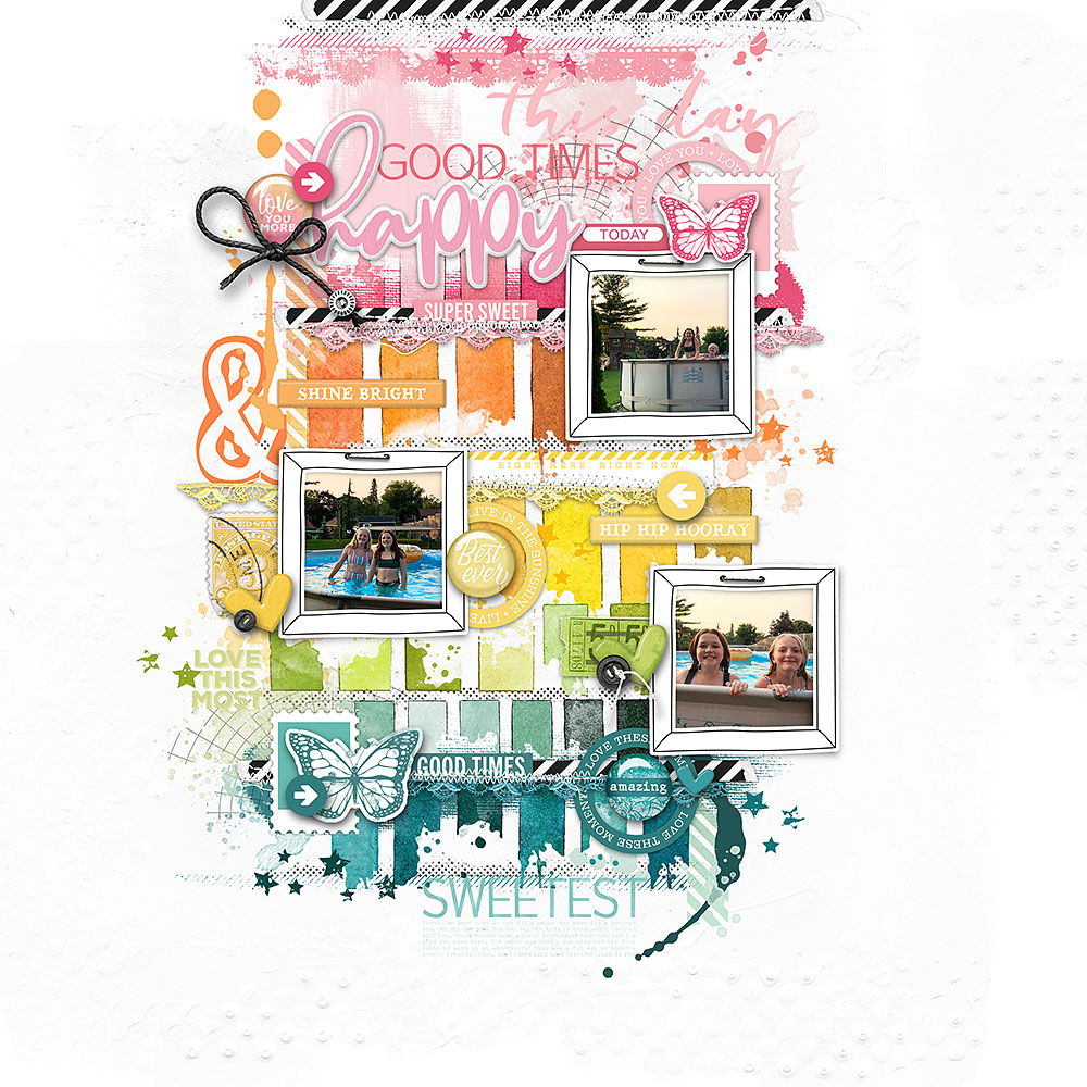 A delightful layout by Kayleigh Wiles with elements from Katie Pertiet. Packed with everything you need, it’s more of a pre-designed page than a template. Simply add your papers, photos and journaling and you’re done! Layered Adobe PSD file and individual PNGs of each layer. File Size: 36MB
