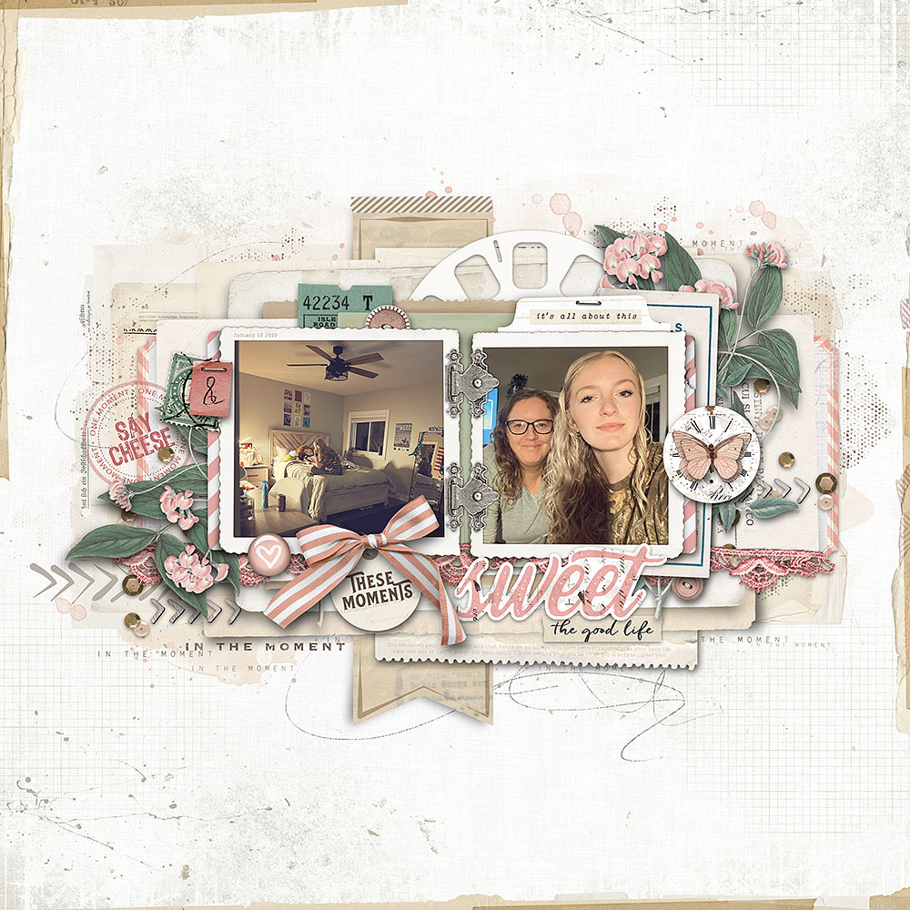 A delightful layout by Kayleigh Wiles with elements from Katie Pertiet. Packed with everything you need, it’s more of a pre-designed page than a template. Simply add your papers, photos and journaling and you’re done! Layered Adobe PSD file and individual PNGs of each layer. File Size: 120MB