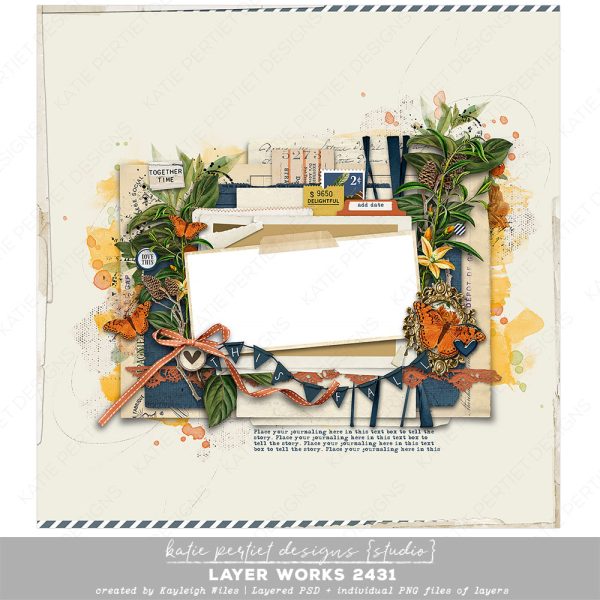 A delightful layout by Kayleigh Wiles with elements from Katie Pertiet. Packed with everything you need, it’s more of a pre-designed page than a template. Simply add your papers, photos and journaling and you’re done! Layered Adobe PSD file and individual PNGs of each layer. File Size: 115MB