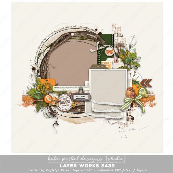 A delightful layout by Kayleigh Wiles with elements from Katie Pertiet. Packed with everything you need, it’s more of a pre-designed page than a template. Simply add your papers, photos and journaling and you’re done! Layered Adobe PSD file and individual PNGs of each layer. File Size: 50MB