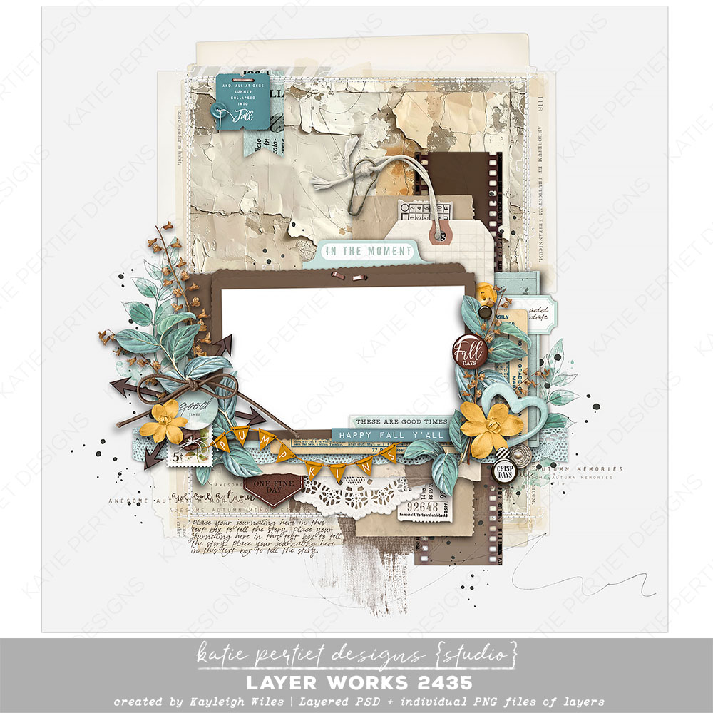 A delightful layout by Kayleigh Wiles with elements from Katie Pertiet. Packed with everything you need, it’s more of a pre-designed page than a template. Simply add your papers, photos and journaling and you’re done! Layered Adobe PSD file and individual PNGs of each layer. File Size: 115MB