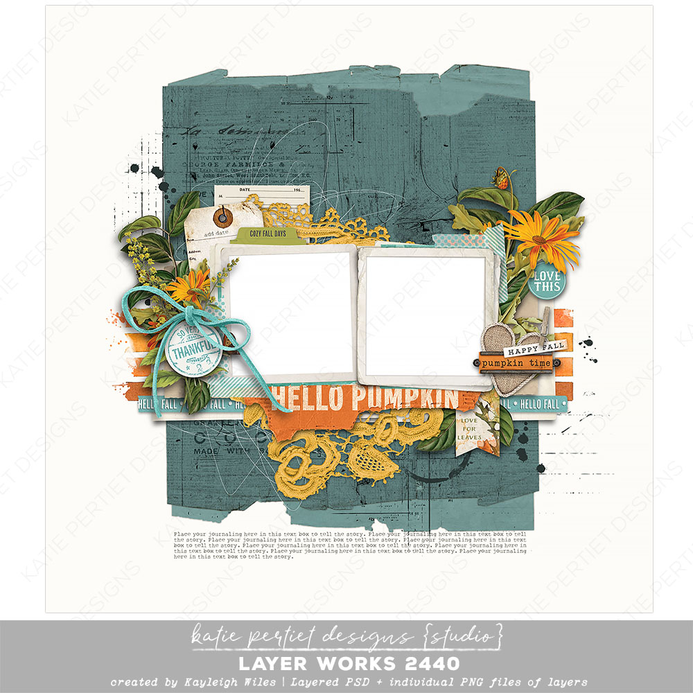 A delightful layout by Kayleigh Wiles with elements from Katie Pertiet. Packed with everything you need, it’s more of a pre-designed page than a template. Simply add your papers, photos and journaling and you’re done! Layered Adobe PSD file and individual PNGs of each layer. File Size: 115MB
