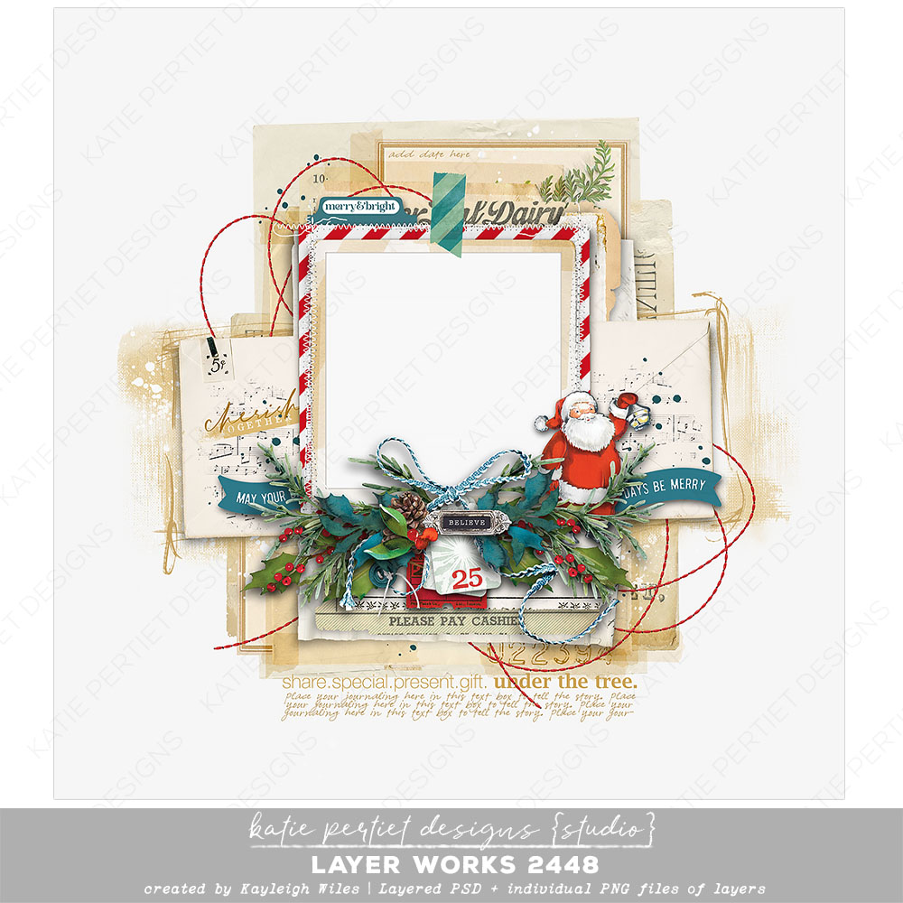 A delightful layout by Kayleigh Wiles with elements from Katie Pertiet. Packed with everything you need, it’s more of a pre-designed page than a template. Simply add your papers, photos and journaling and you’re done! Layered Adobe PSD file and individual PNGs of each layer. File Size: 110MB