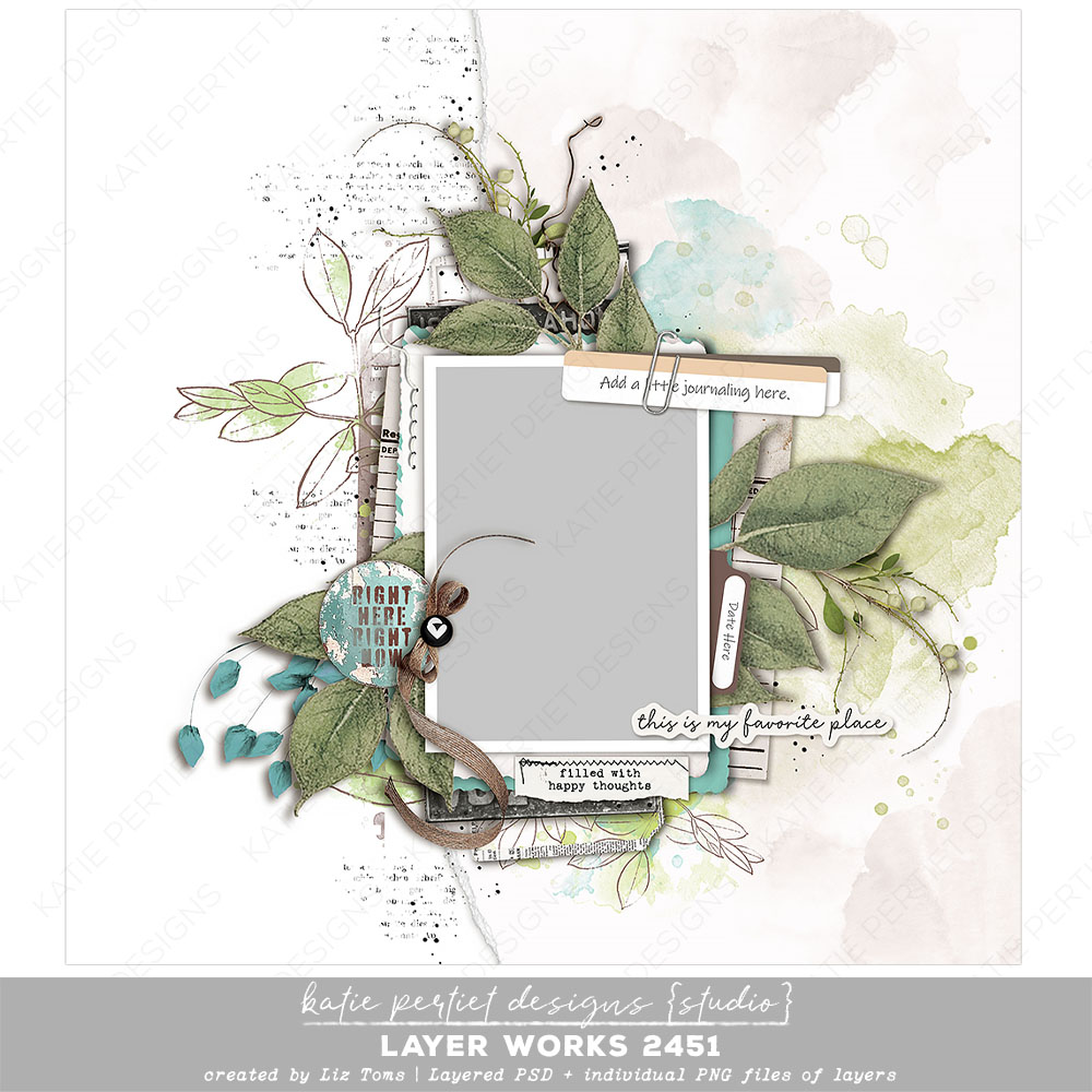 A delightful layout by Liz Toms with elements from Katie Pertiet. Packed with everything you need, it’s more of a pre-designed page than a template. Simply add your papers, photos and journaling and you’re done! Layered Adobe PSD file and individual PNGs of each layer. File Size: 85MB