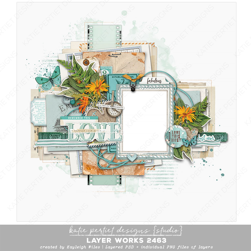 A delightful layout by Kayleigh Wiles with elements from Katie Pertiet. Packed with everything you need, it’s more of a pre-designed page than a template. Simply add your papers, photos and journaling and you’re done! Layered Adobe PSD file and individual PNGs of each layer. File Size: 120MB