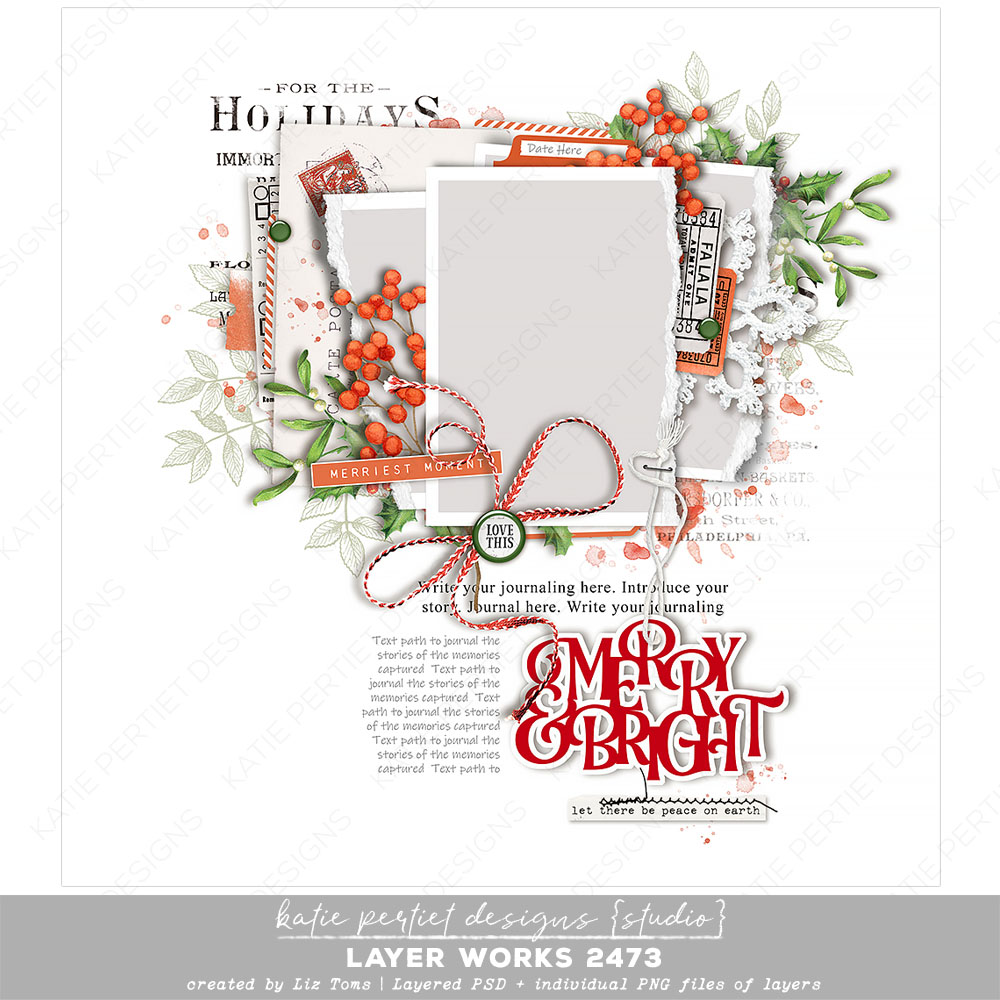 A delightful layout by Liz Toms with elements from Katie Pertiet. Packed with everything you need, it’s more of a pre-designed page than a template. Simply add your papers, photos and journaling and you’re done! Layered Adobe PSD file and individual PNGs of each layer. File Size: 45MB