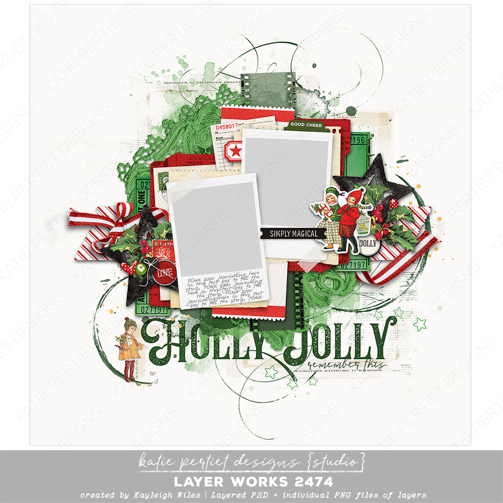 A delightful layout by Kayleigh Wiles with elements from Katie Pertiet. Packed with everything you need, it’s more of a pre-designed page than a template. Simply add your papers, photos and journaling and you’re done! Layered Adobe PSD file and individual PNGs of each layer. File Size: 95MB