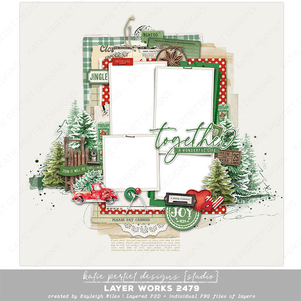 A delightful layout by Kayleigh Wiles with elements from Katie Pertiet. Packed with everything you need, it’s more of a pre-designed page than a template. Simply add your papers, photos and journaling and you’re done! Layered Adobe PSD file and individual PNGs of each layer. File Size: 125MB
