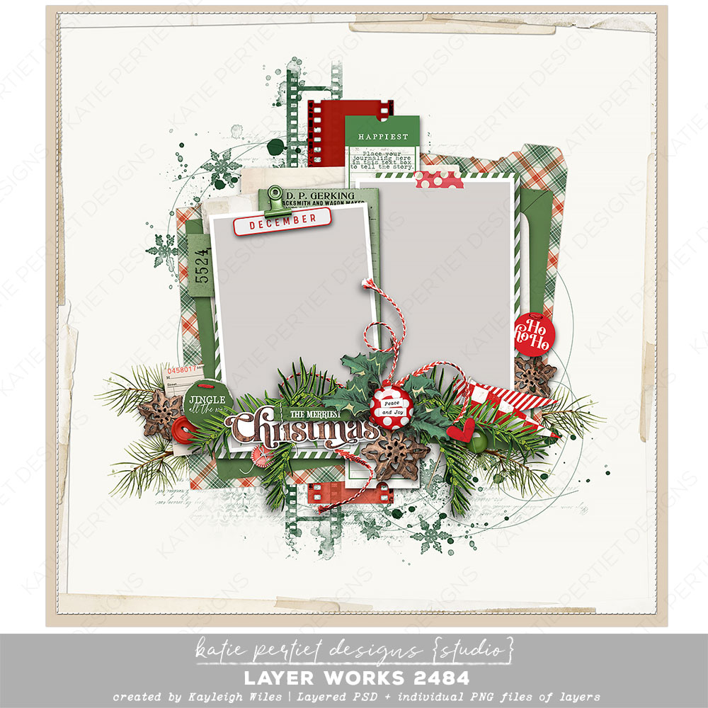 A delightful layout by Kayleigh Wiles with elements from Katie Pertiet. Packed with everything you need, it’s more of a pre-designed page than a template. Simply add your papers, photos and journaling and you’re done! Layered Adobe PSD file and individual PNGs of each layer. File Size: 95MB