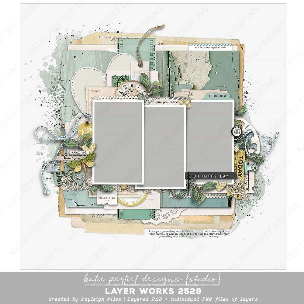 A delightful layout by Kayleigh Wiles with elements from Katie Pertiet. Packed with everything you need, it’s more of a pre-designed page than a template. Simply add your papers, photos and journaling and you’re done! Layered Adobe PSD file and individual PNGs of each layer. File Size: 130MB