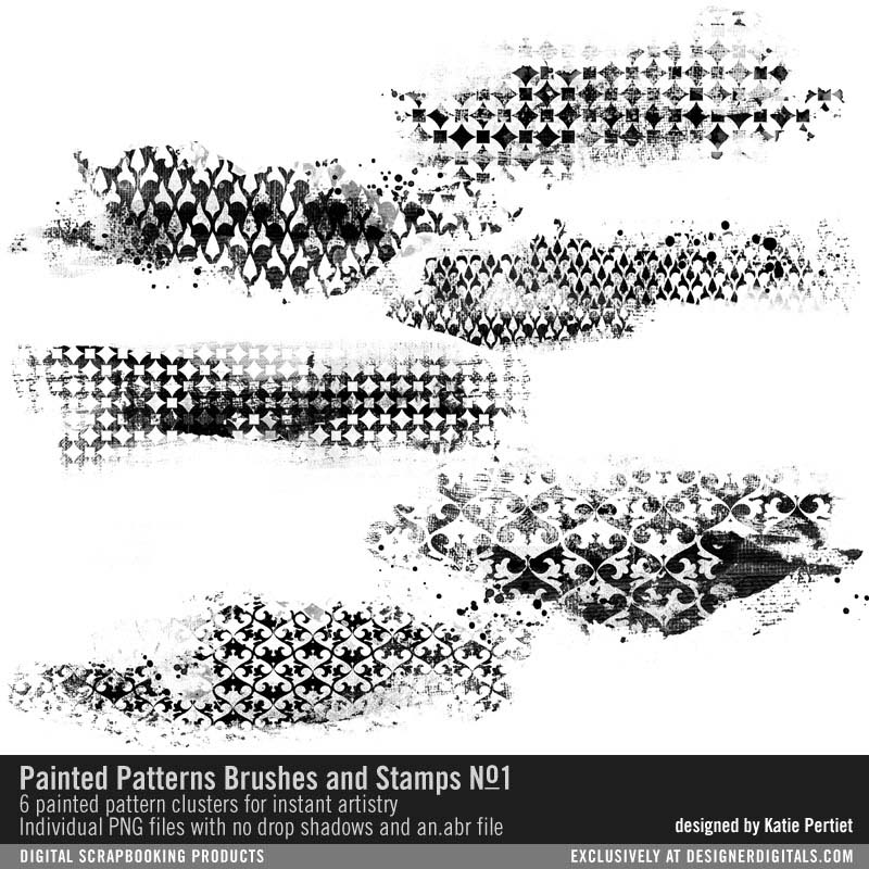 6 Painted pattern clusters for instant artistry. Individual PNG files and an .abr file. File Size: 13MB All My Heart _ Left, AJG1.
