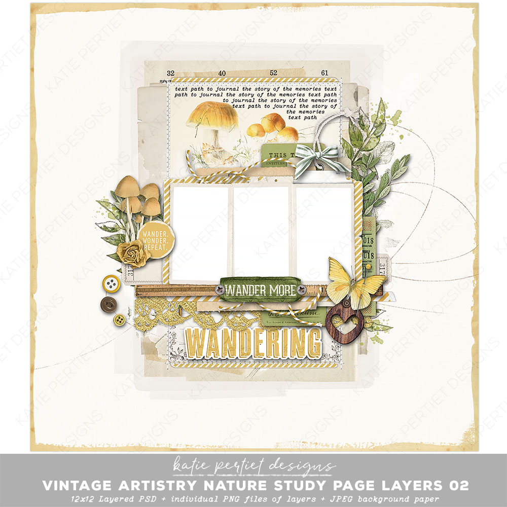 The Nature Study Page Layers are from the paper page kits designed for 49 and Market and inspired by our Layer Works series. They have nearly everything you need to create a beautiful page. Simply add your paper, photos, journaling and you’re finished! Or customize the page by changing colors, adding elements, removing elements and more. These pages get you started in a great direction. Layered Adobe PSD file and individual PNGs of each layer. File Size: 55MB
