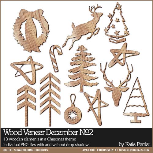 13 Wooden elements in a December theme. Individual PNG files with and without drop shadows. File Size: 11MB